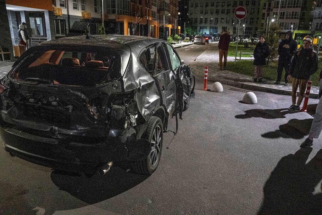 Серхи Попко, шеф на градската воена управа во Киев, во соопштение рече дека паѓањето на остатоци од пресретнати дронови оштетило станбени згради и автомобили во областа Свјатошински во главниот град.