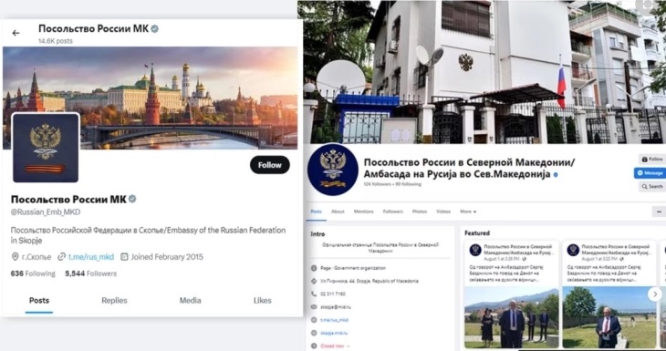 Според бројот на објавите на социјалната мрежа Фејсбук, дипломатските претставништва на ЕУ, Франција, Германија, Русија, Велика Британија и САД во Северна Македонија во 2021 и 2022 година објавиле околу 7.500 постови. Над 50 отсто од овие објави отпаѓаат на руските дипломатски претставништва во земјава.