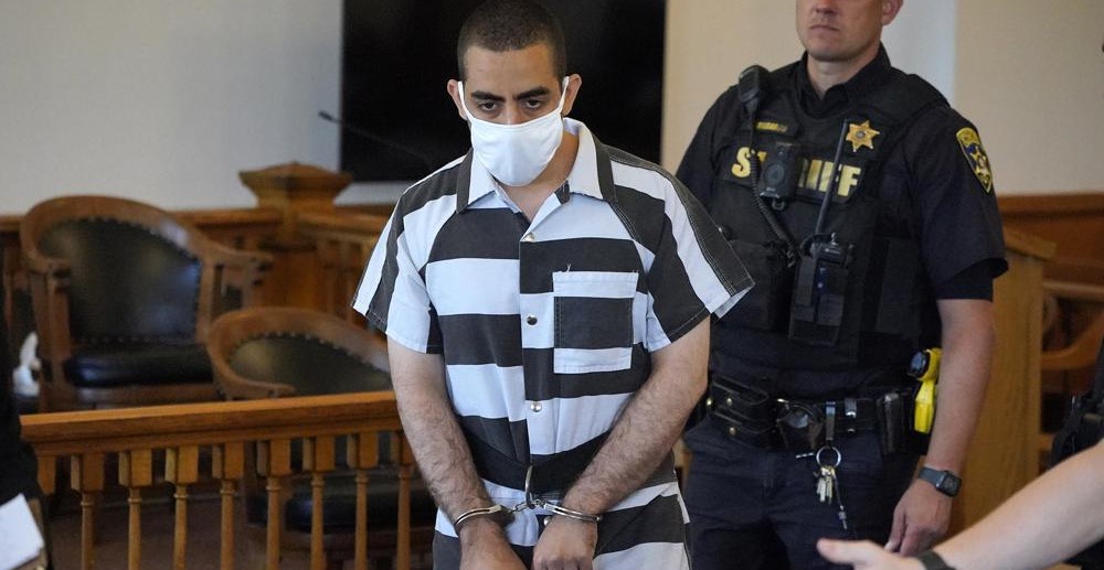 Ружди со години се соочуваше со смртни закани поради неговата книга „Сатански стихови“ од 1988, чија содржина некои муслимани ја сметаат за богохулна. Осомничениот пред судот се појави облечен во црно-бел комбинезон и бела маска за лице, а рацете му беа врзани пред него. Судијата нареди да биде задржан без кауција откако окружниот обвинител кажа дека Матар презел чекори за намерно да се стави себеси во позиција да му наштети на Ружди, добивајќи однапред пропусница за настанот каде што писателот требаше да говори и пристигнал еден ден порано со лажен документ за идентификација.