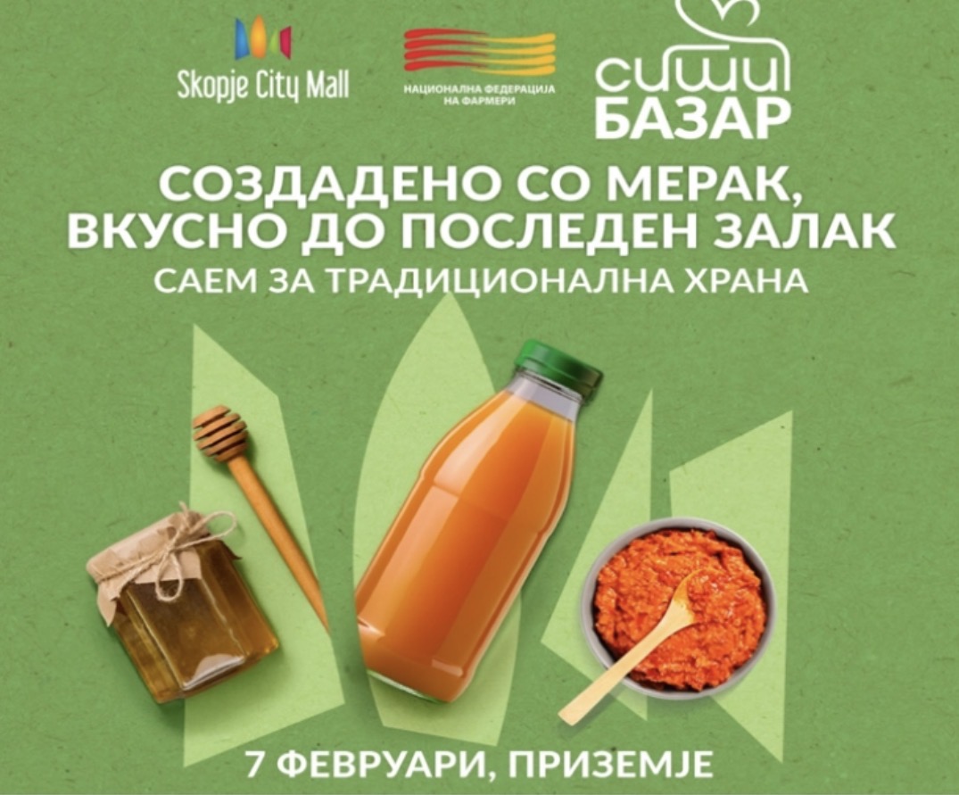 Националната федерација на фармери (НФФ) денеска организира Саем на македонска традиционална храна под мотото „Создадено со мерак, вкусно до последен залак“. Настанот ќе се одржи во Скопје City Mall, во периодот од 10:00 до 20:00 часот.