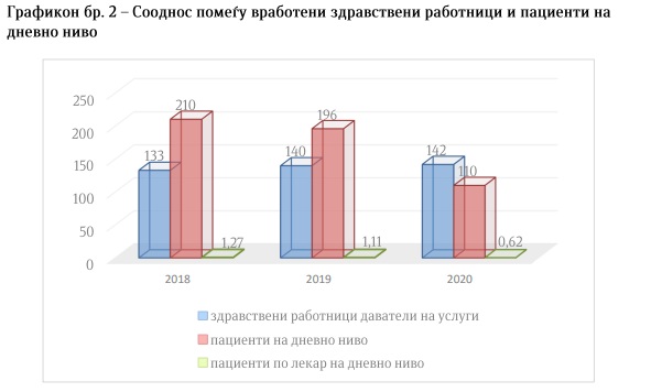 Имено, Државниот завод за ревизија нотирал дека секој здравствен работник давал услуги од дејноста на клиниката во просек на еден пациент дневно што е причина да не се оствари потревниот вид и обем на здравствени услуги во висина со договорениот надоместок со Фондот за здравствено осигурување.