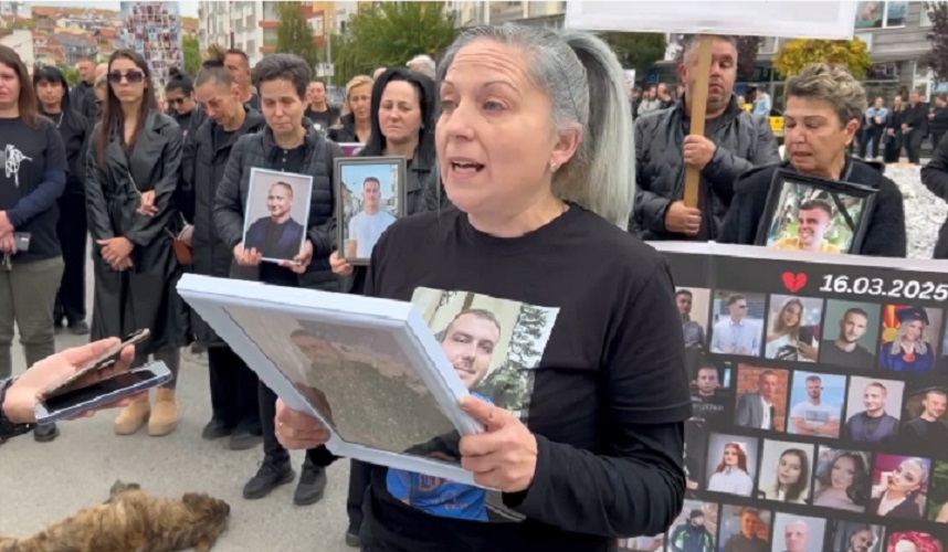 „Не кријте се зад прес-конференции, трибини, митинзи и лажни насмевки. Наведнте ја главата и кажете ‘Да, згрешивме’. Бараме правда, не за утеха, туку за вистината. Бараме тишина во која совеста ќе проговори, судница што ќе биде храм, а не циркус, судија што ќе мери со срце и закон, а не со нарачка. Бараме држава што нема да ја штити вината, туку вистината и бараме инситуции што ќе имаат совест, а не интерес“, порачаа учесниците на собирот во обраќањето кое што на кружниот тек на улицата „Стево Теодосиевски“, го прочита мајка на починато момче во пожарот во кочанската дискотека.