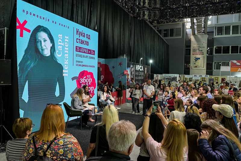 Енергична и ведра, со постојана насмевка и исклучително топол и пријателски пристап, популарната американска авторка на психолошки трилери Сара Пеканен викендов се сретна со македонските читатели на штандот на издавачката куќа „Арс Ламина“, на Саемот на книгата. Во позитивна атмосфера во арената „Борис Трајковски“, каде љубителите на добриот трилер создадоа долги редици, Пеканен ја промовираше и потпишуваше својата книга „Куќа од стакло“, привлекувајќи големо внимание и интерес.