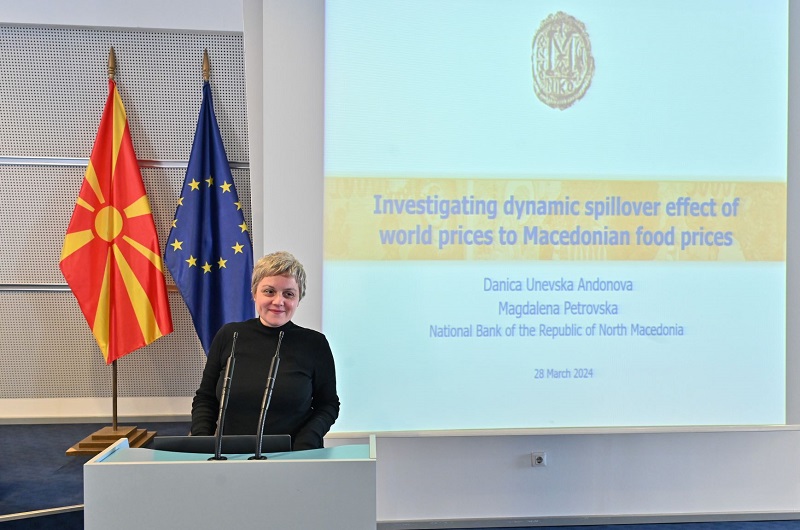 На оваа сесија беше претставен научниот труд „Испитување на динамичкиот пренесен ефект на светските цени врз македонските цени на храната“ од авторите Даница Уневска Андонова и Магдалена Петровска. Сесијата ја отвори директорката на Секторот за монетарна политика, истражување и статистика, Султанија Бојчева-Терзијан, која потенцираше дека презентираниот труд е од особено значење, бидејќи истражува прашање кое што во изминатите две-три години е клучно за носителите на монетарната политика, а е од интерес и за широката јавност. Растот на цените на храната објаснуваат речиси половина од растот на домашната инфлација и од тука подлабокото разбирање на преносниот ефект на светските врз домашните цени на храната се од големо значење за нашата економија.