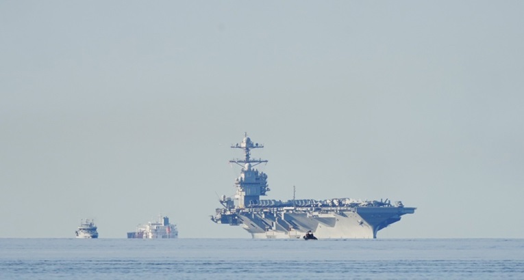 Форд носи повеќе од 75 воени авиони, вклучувајќи го и Ф-18 Супер Хорнет, и користи софистициран радарски систем за контрола на воздушниот сообраќај и навигација. Пред да биде распореден на Блискиот Исток, носачот учествуваше во американските операции во Карибите, каде што американските сили извршија напади врз бродови осомничени за шверц на дрога, пресретнаа санкционирани танкери и го уапсија венецуелскиот претседател Николас Мадуро.