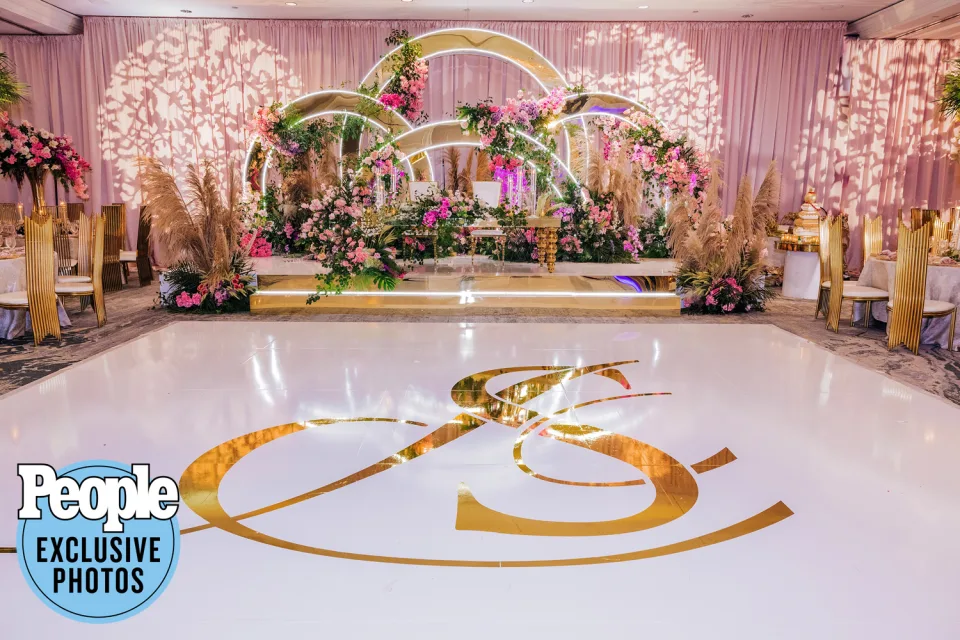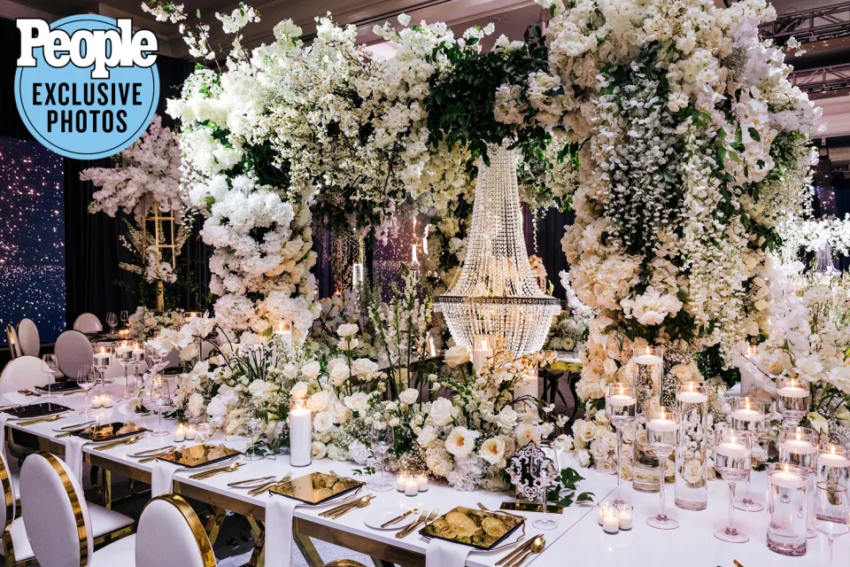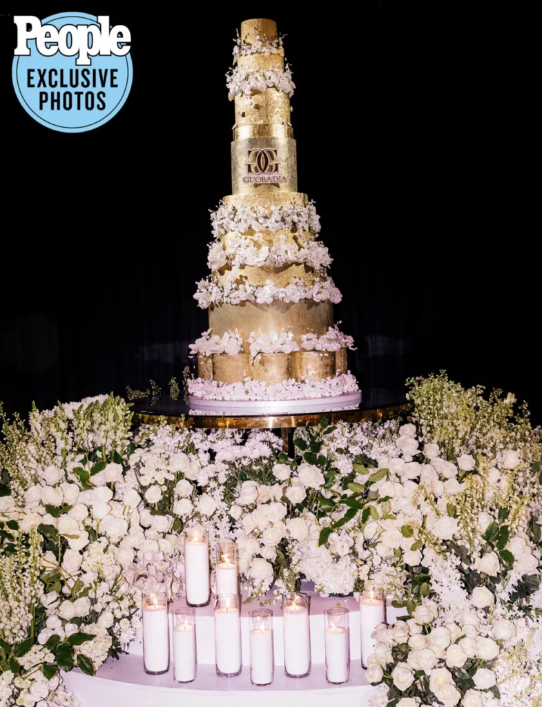 Свадбата била гламурозна од облеката до златната торта. Невестата сменила блескави седум тоалети.
