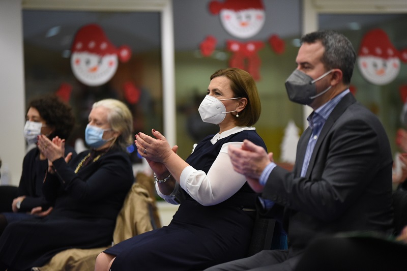 Министерката за труд и социјална политика, Јагода Шахпаска заедно со заменик-амбасадорката на Велика Британија во земјава, Џулија Смит, претставничката на УНИЦЕФ во државата, Патриција ди Џовани и градоначалникот на Општина Центар Горан Герасимовски присуствуваа на презентација на „Програмата за социјална кохезија и културен дијалог“, во детската градинка „Кочо Рацин“ во Скопје.