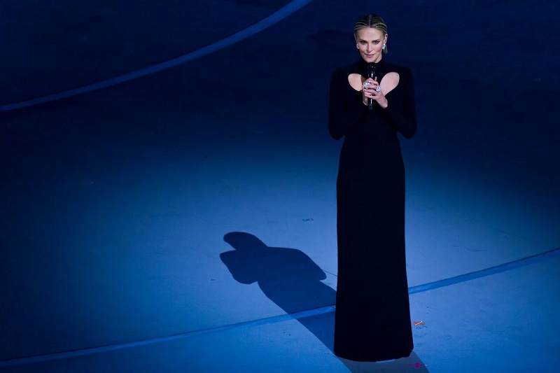 Терон им се придружи на голем број познати лица во Париз во вторник, вклучувајќи ги Пријанка Чопра Џонас, Емили Ратајковски, Шеј Мичел, Ања Тејлор-Џој и Меколи Калкин. Таа ја носеше својата руса боб фризура залижана зад ушите, а изгледот го комплетираше со суптилна шминка со смело руменило, нежно зачадено око и розови усни.