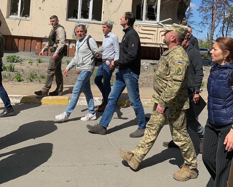 Бербок ја започна својата посета на Буча, северозападно од Киев, со разговори со жителите на градот, соопшти германската новинска агенција ДПА. По руската опсада на Буча, украинските власти пронајдоа ликвидирани цивили на улиците и во масовните гробници, а на некои им беа врзани раце.