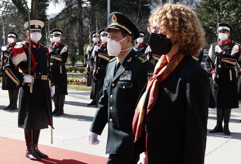 Со високи воени почести денеска во Министерството за одбрана беше пречекан министерот за одбрана на Кина, генералот Веи Фенгхе, кој престојува во официјална посета на Северна Македонија.