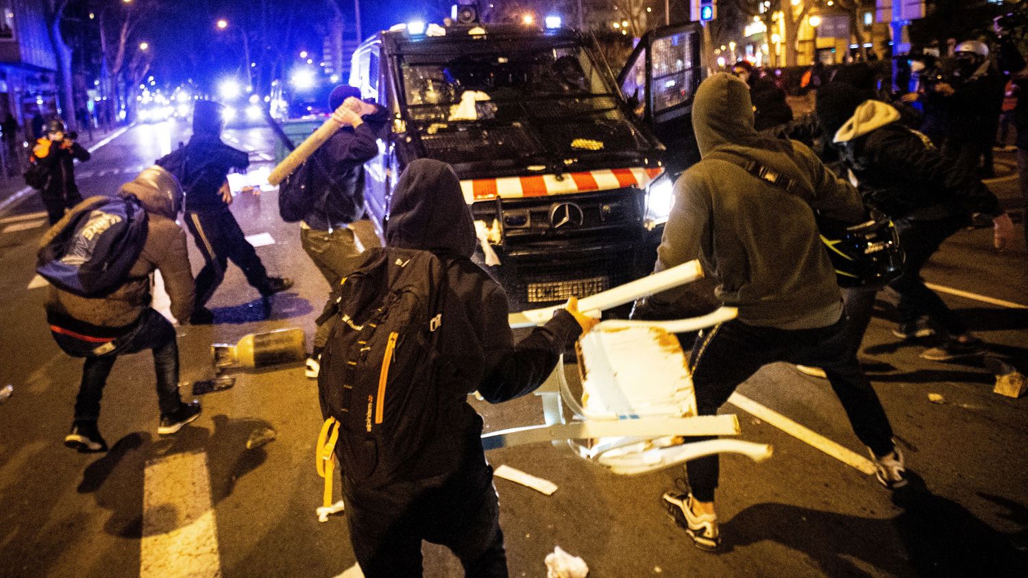 Демонстрантите воглавно облечени во темна облека маршираа од центарот на Барселона до седиштето на Националната полиција, каде врз зградата фрлаа камења, шишиња, отпад и петарди, на што возврати полицијата.