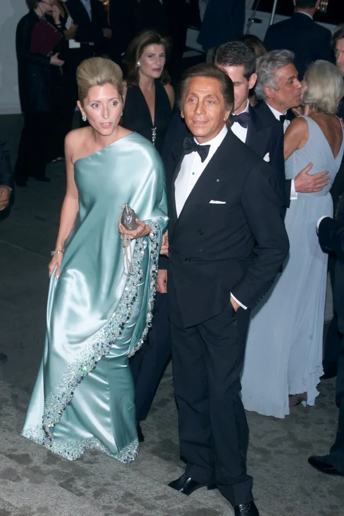 Позирајќи со самиот дизајнер, принцезата Мари-Шантал од Грција прошета на тепихот на Мет Гала во 2001 година во сатенска тоалета на Валентино. Принцезата, која е омажена за Павлос, престолонаследникот на Грција, на гала настанот носеше фустан во сина боја. Тоалетата беше во грчки стил со едно рамо .