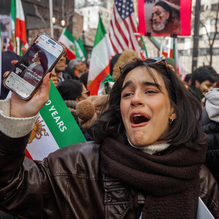 Додека во некои делови од градот луѓето излегоа на улиците со портрети на убиените лидери на режимот како маченици, палеа свеќи и извикуваа слогани против САД и Израел, во други, вклучително и во дијаспората, илјадници славеа – се слушаа автомобилски сирени, луѓето танцуваа, носеа слики од жртвите на задушувањето на неодамнешните протести и испраќаа пораки за „крајот на една ера“.
