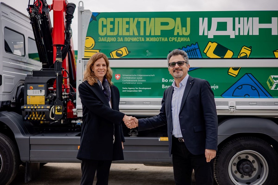 Со цел да се подобри селектирањето и одлагањето на отпадот, во партнерство со Владата на Швајцарија, Пакомак инвестира во паметни зелени технологии кои го олеснуваат процесот на селекција за граѓаните. Во рамки на оваа соработка, денес Швајцарската амбасадорка, Н.Е. Вероник Улман, официјално му предаде на Пакомак два специјализирани камиони за собирање на отпад од пакување.