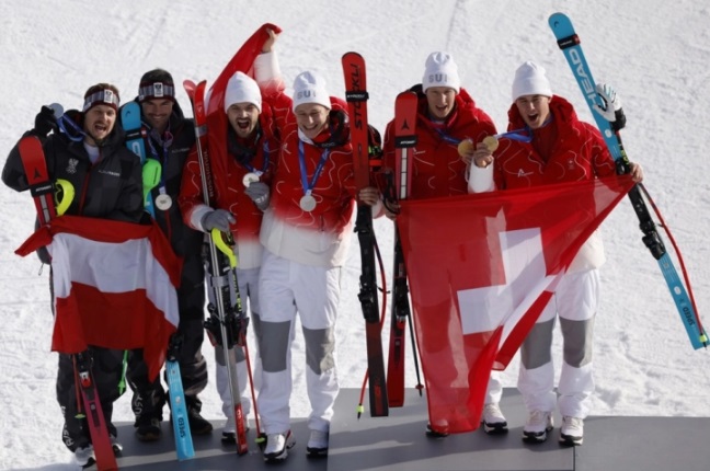 Сребрениот медал го поделија тимовите на Австрија 1 и Швајцарија 1, кои имаа исто време 2:45.03 минути или 99 стотинки послабо од победниците. За тимот на Австрија се натпреваруваа Винсент Крајхмар (спуст) и Мануел Фелер (слалом), додека за Швајцарија 1 претставници беа: Марко Одермат (спуст) и Лоик Милард (слалом).