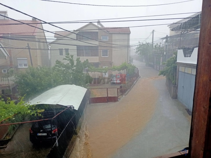 Силен дожд со град попладнево околу 14 часот го зафати Велес. Велешките главни и споредни улици во ниските делови од градот беа поплавени со вода поради високата конфигурација на градот и нерешената атмосферска канализација. Движењето на сообраќајот по главните улици беше отежнато, а посебно на пешаците кои не можеа да ги преминат улиците од едната на другата страна.