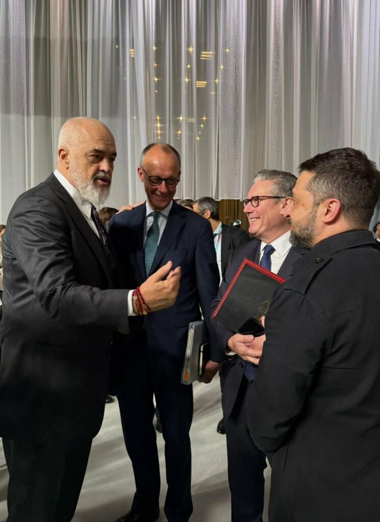 Затоа пак Еди Рама објави цел албум од фотографии на кои ги менува лидерите „како чорапи“ – еднаш со германскиот канцелер Мерц, па со францускиот претседател Емануел Макрон, со италијанската премиерка Џорџија Мелони – и на секоја е во центарот. Има што да каже човекот.