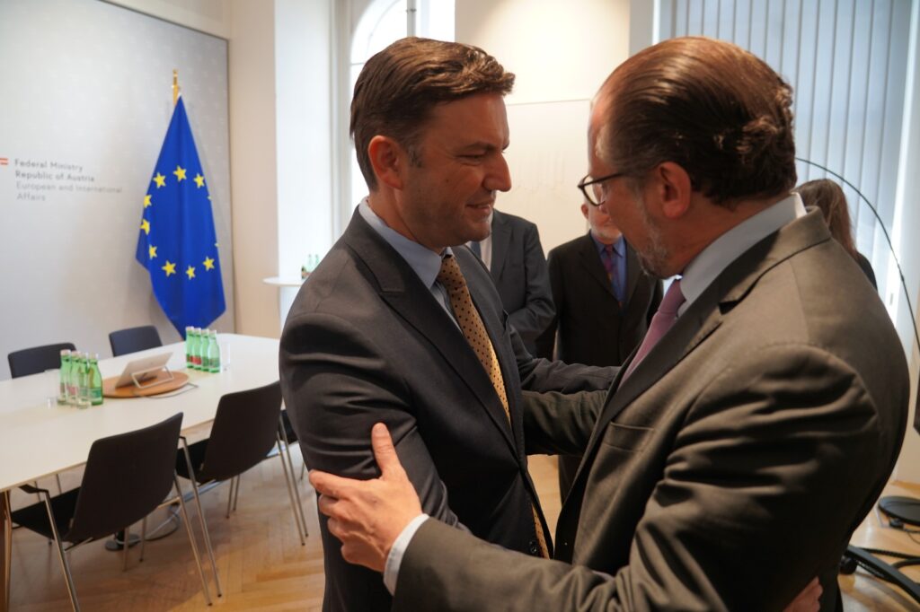 Министерот за надворешни работи Бујар Османи, денеска за време на работната посета на Виена, оствари билатерална средба со сојузниот министер за европски и меѓународни работи на Република Австрија, Александер Шаленберг.