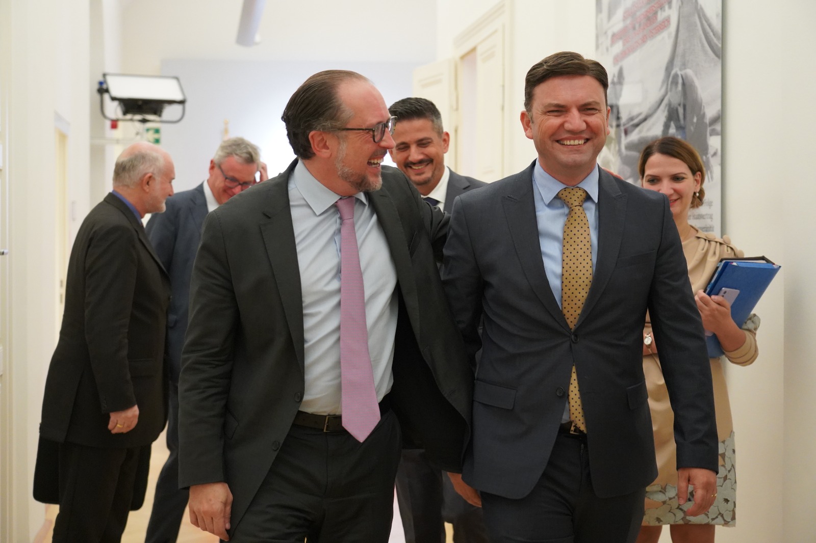 Министерот за надворешни работи Бујар Османи, денеска за време на работната посета на Виена, оствари билатерална средба со сојузниот министер за европски и меѓународни работи на Република Австрија, Александер Шаленберг.
