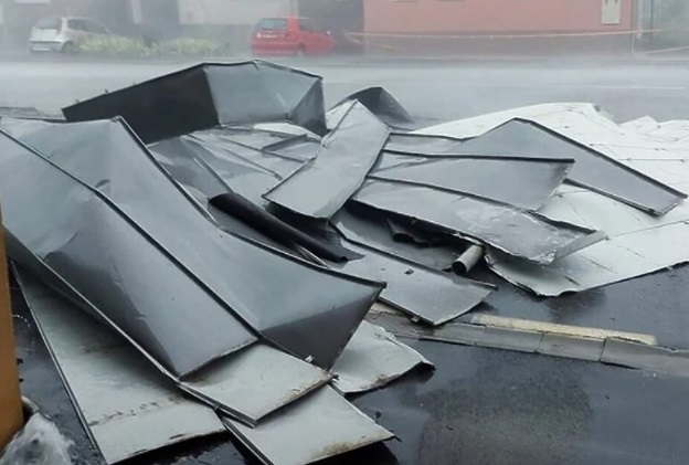Во Осиек од силниот дожд поплавени се повеќе сообраќајници, а силниот ветар откорна покрив од една зграда. Поради тоа, во прекин беше напојувањето со струја. Под автомобил се отворила дупка, па пожарникарите го извлекувале возилото. Има повеќе поплавени подруми, а во Центарот за помош се јавиле повеќе од 300 граѓани.
