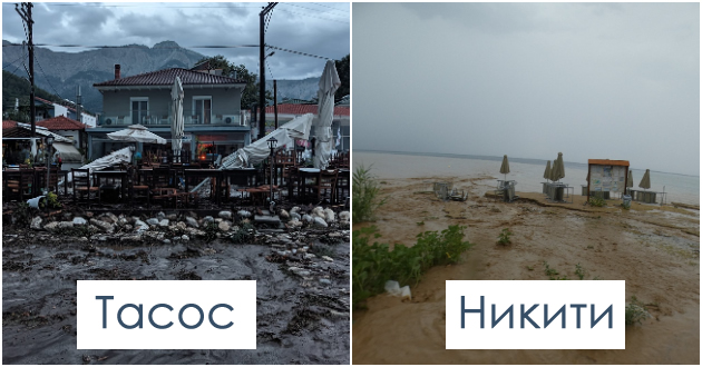 Солун, Атина, Халкидики, Тасос и некои од другите острови се соочија со силни дождови и ветрови, а како последица улиците се поплавени и уништени се објекти и плажи, но засега нема информација за повредени. На поголем дел од местата, ситуацијата со времето е веќе смирена.