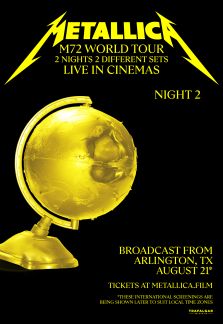 „Металика“ во живо од Арлингтон, Тексас, на 19 и 21 август во „Синеплекс“ преку HD сателитски пренос , со тотално различни сетови. Нема да ги чуете истите песни по два пати. Ќе бидат изведени песни од текот на целата нивна 40-годишна кариера.