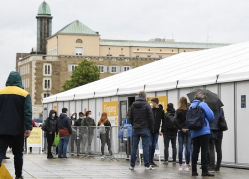 Откако германската влада воведе бесплатно тестирање за сите граѓани на почетокот на март, центри за тестирање се појавија низ целата земја. Освен во аптеките и кај лекарите, тестовите може да се вршат и во еден од многуте центри лоцирани во трговски центри, паркинзи на трговски центри или во едноставни контејнери во близина на прометни локации, како што се железнички станици.