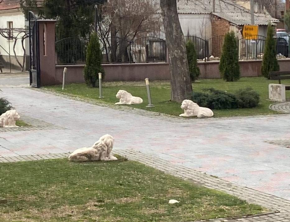 „Скопје 2014“ оживеа во Новаци, скулптурите со лавови вратени во дворот на општинската зграда