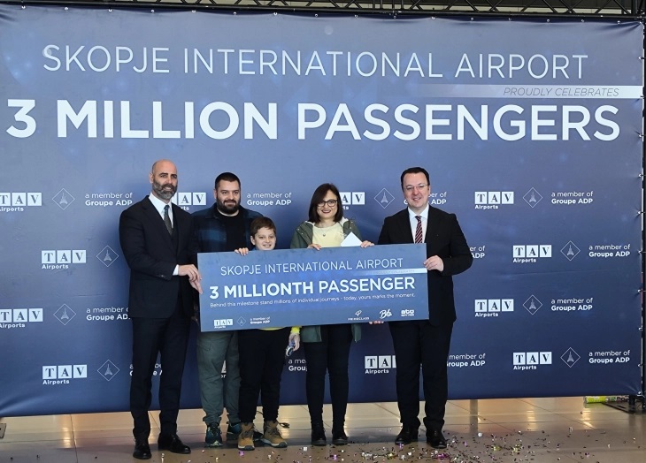 Раководството на аеродромскиот оператор во присуство на вицепремиерот и министер за транспорт Алекснадар Николоски приреди изненадување за три милионитиот патник, кој доби бесплатни аеродромски услуги од сестринските компани на ТАВ и два бесплатни билета од Виз Ер.