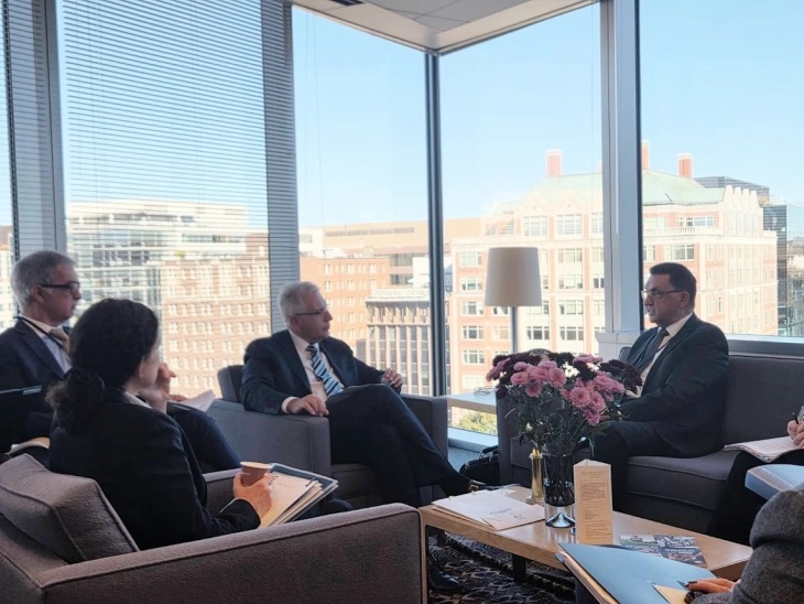 Гувернерот Славески се сретнал со заменик-директорот на ММФ Бо Ли, директорот на Европскиот оддел во ММФ Алфред Камер, извршниот директор Јерон Клик, заменик-директорите Марникс ван Рај и Владислав Рашкован и шефот на Мисијата на ММФ за нашата земја Ник Гигинеишвили.