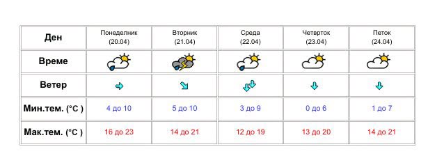 Минималните температури во овој период ќе се спуштат до критичната точка од нула степени, што бара посебно внимание кај граѓаните, додека максималните дневни вредности во петок повторно ќе почнат да растат, достигнувајќи околу 21 степен Целзиусов.