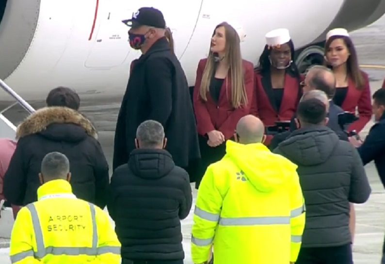 Во согласност со меѓународните правила за летање, авионот најпрво слета на меѓународниот аеродром во Тирана, за потоа да продолжи како локален лет. Во Тирана во авионот влезе и премиерот Рама.