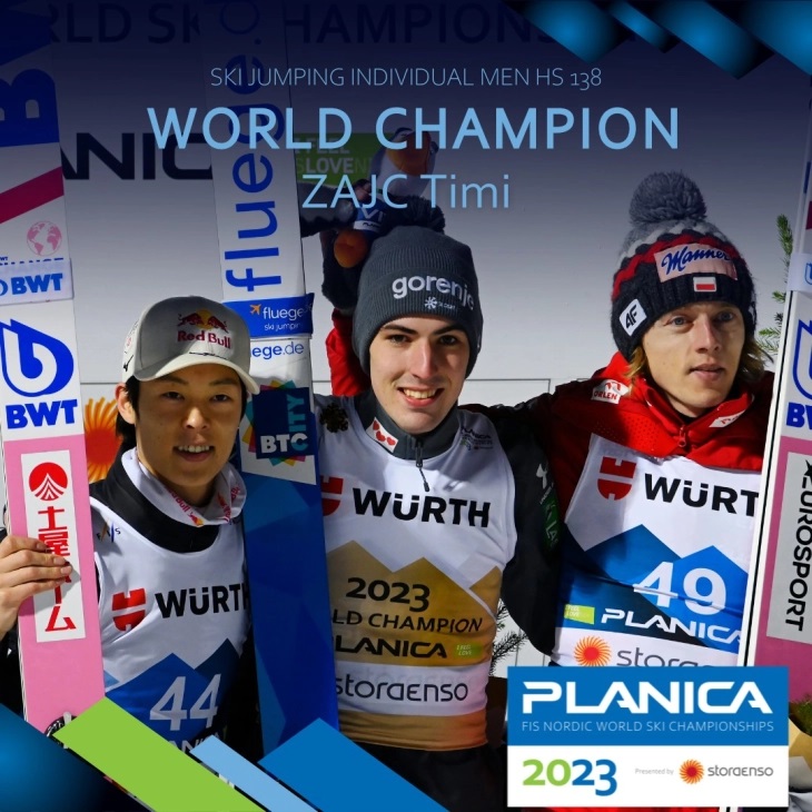 Словенија – Словенечкиот ски скокач Тими Зајц го освои златниот медал на големата скокалница на Светското првенство кое се одржува на Планица.
