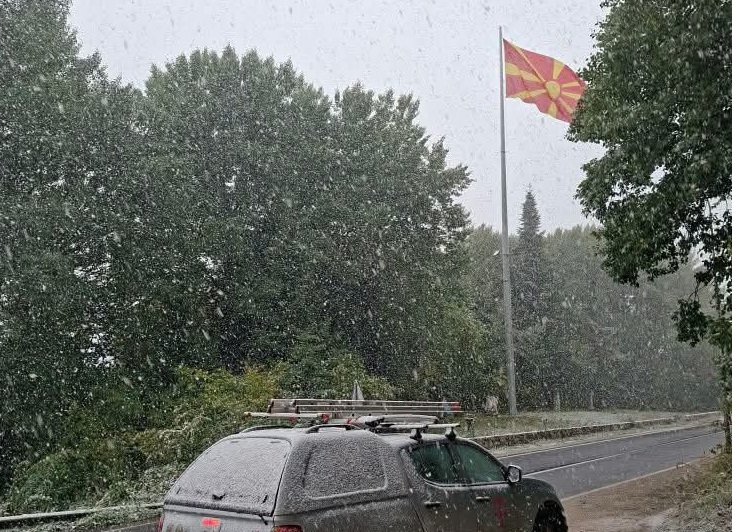 Од видеокамерите на Шапка, може да се види белата покривка на планината. По социјалните медиуми се споделуваат и фотографии од снегот кој паѓа во Маврови Анови.