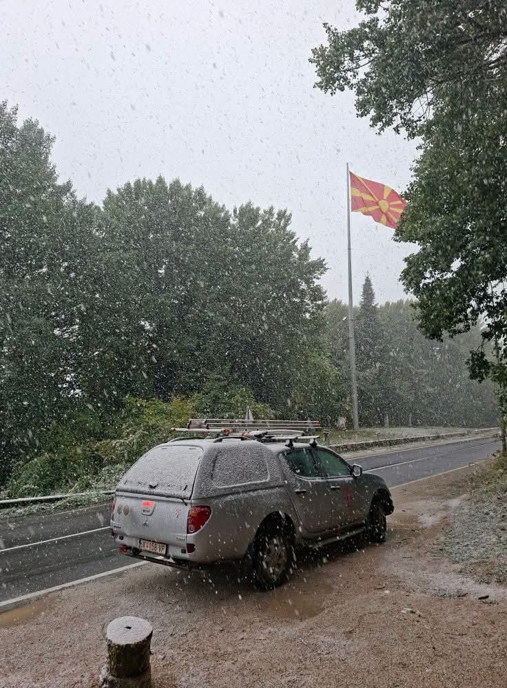 Од видеокамерите на Шапка, може да се види белата покривка на планината. По социјалните медиуми се споделуваат и фотографии од снегот кој паѓа во Маврови Анови.