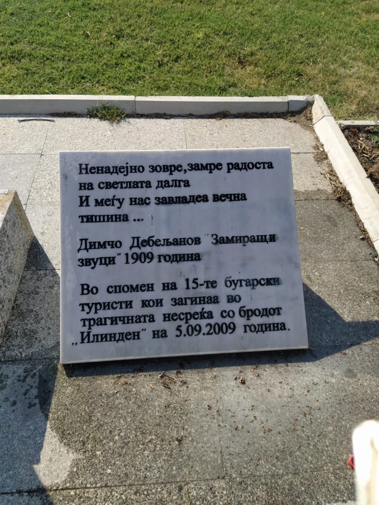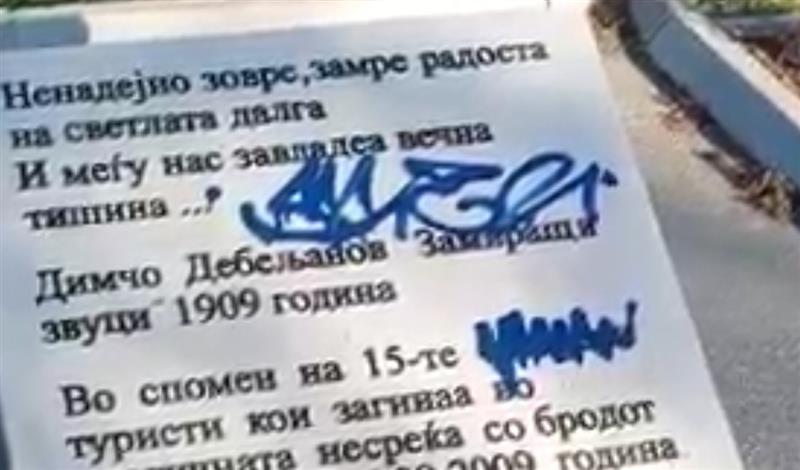 Инаку, непознати сторители со испишани графити ја нагрдиле спомен плочата поставена пред паметникот на бугарските туристи кои трагично настрадаа во бродската несреќа на Охридското Езеро.