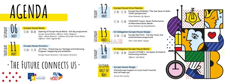 Со серија активности и свечености организирани во текот на месец мај во соработка со мрежата на Europe House под слоганот Иднината нè поврзува, делегацијата на Европската Унија ќе го прослави Денот на Европа 2023 година.