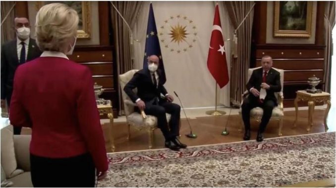 Во јавноста во ЕУ во меѓувреме ова се претвори во “Софагејт“ со силни критики кон турскиот претседателот но и кон претседателот на Европскиот Совет, Шарл Мишел, кој на снимката без колебање седнува до турскиот претседател, додека претседателката Урсула фон дер Лајен се гледа видно збунета од распоредот на столиците, поради кој таа е приморана да седне на страна на софата, далеку од соговорниците.