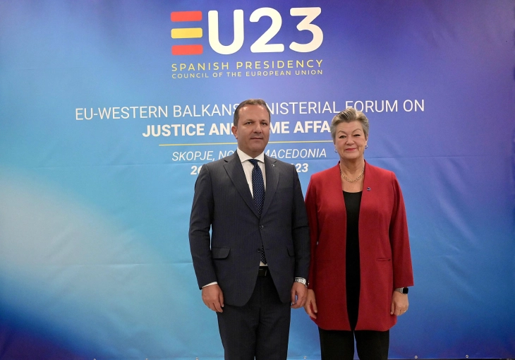 Министерот за внатрешни работи Оливер Спасовски денеска остварил билатерална средба со еврокомесарката за внатрешни работи и миграција Илва Јохансон, во рамки на министерскиот форум за правда и внатрешни работи, кој оваа година го организира Република Северна Македонија заедно со шпанското претседателство со Советот на ЕУ.