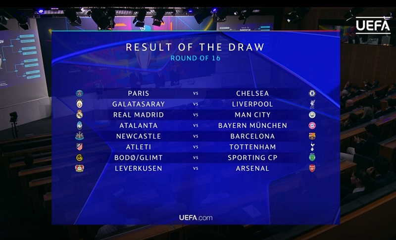 Точниот распоред на натпреварите од осминафиналето ќе биде објавен вечерва. Распоредот за четвртфиналето ќе биде објавен на 19 март, по осминафиналето, а датумите на полуфиналето ќе бидат објавени на 16 април, откако ќе бидат познати сите полуфиналисти.