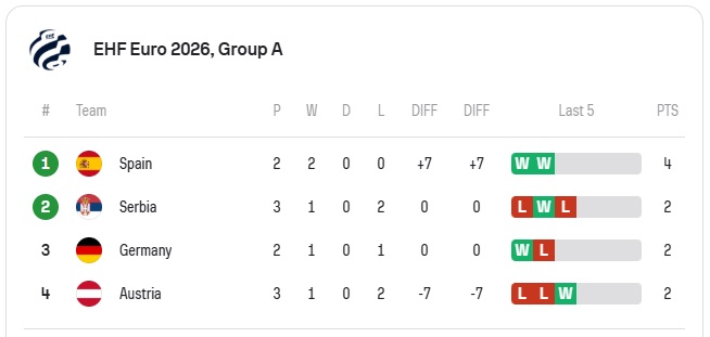 Австриската ракометна репрезентација ја победи Србија со резултат од 26:25 во 3. коло од Групата А на Европското првенство во ракомет, со што ги доведе нашите источни соседи на работ на испаѓање.