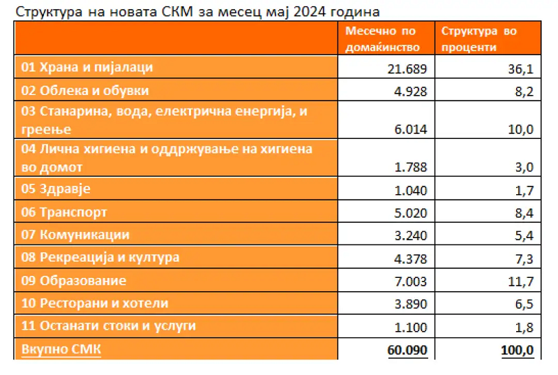 ССМ: Синдикална минимална кошница за мај 60.090 денари