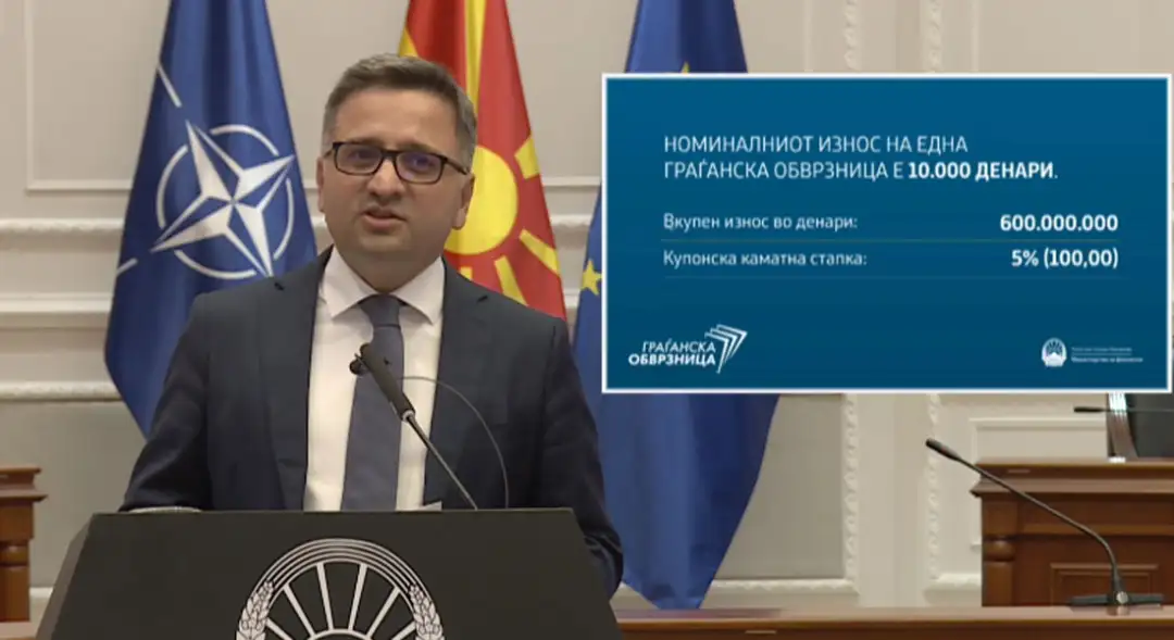 -Новиот финансиски инструмент на пазарот носи бројни придобивки, како за граѓаните, така и за економијата во целина. Средствата кои ќе се мобилизираат преку аукцијата на граѓанските обврзници, ќе се искористат за буџетски потреби – за тековни потреби и за развојни цели и инвестиции во трајни добра, рече премиерот Димитар Ковачевски на заедничка прес-конференција со министерот за финансии Фатмир Бесими.