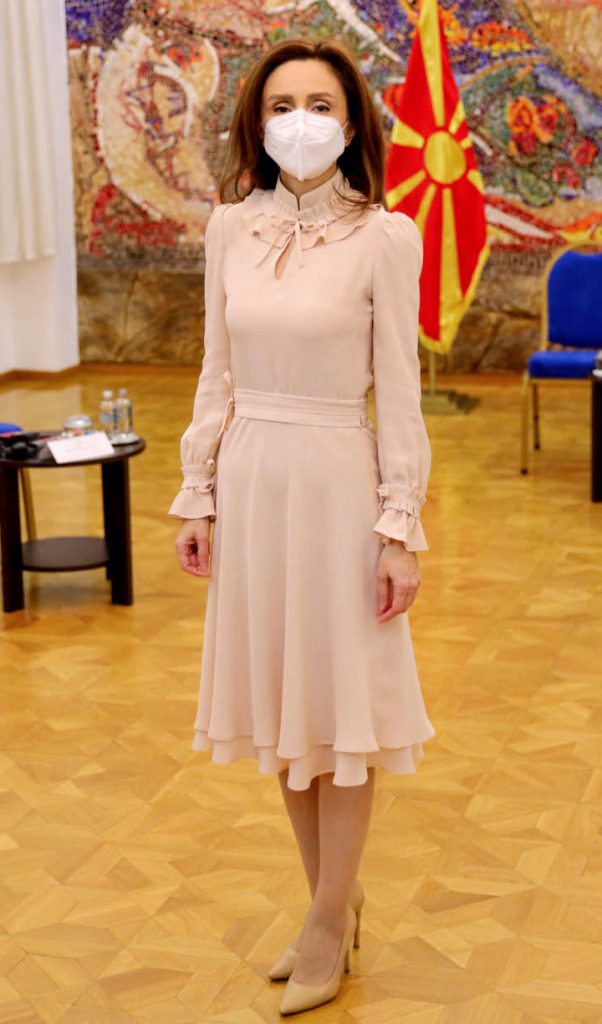 Стилот на првата дама Ѓоргиевска на Светскиот ден на жени научнички: Пудра розе фустан со неколку слоеви симболика