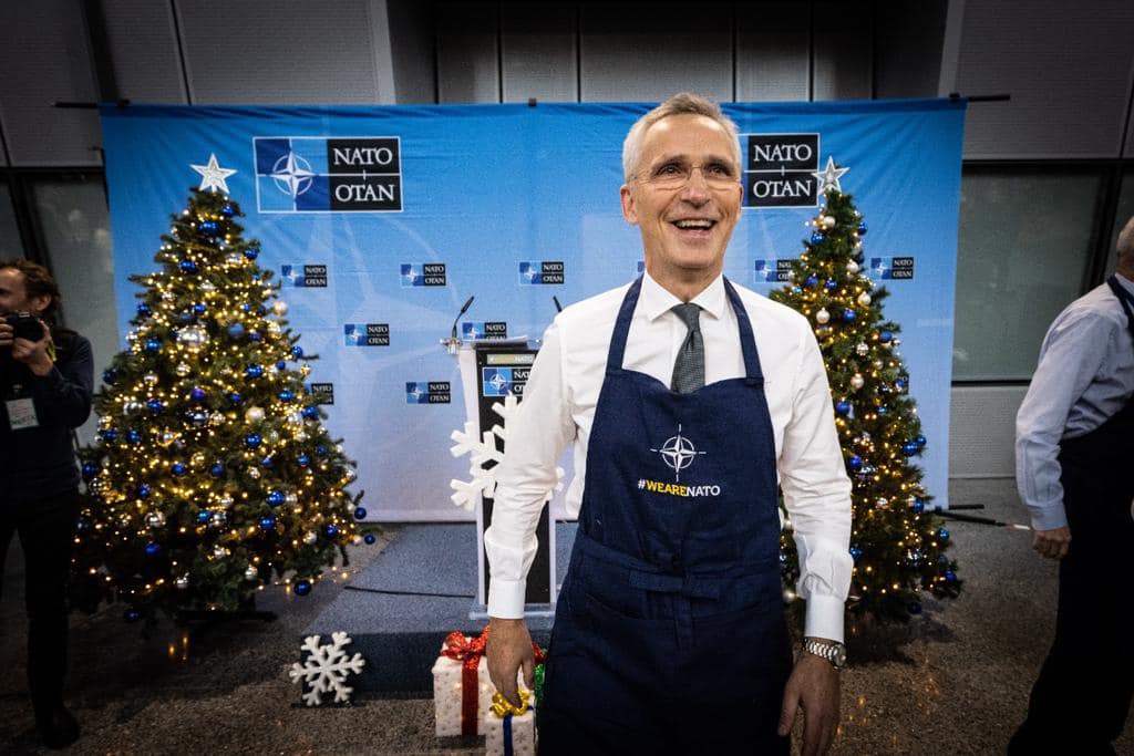 Генералниот секретар на НАТО, Јенс Столтенберг, по повод божиќните празници им правеше палачинки на вработените во НАТО.