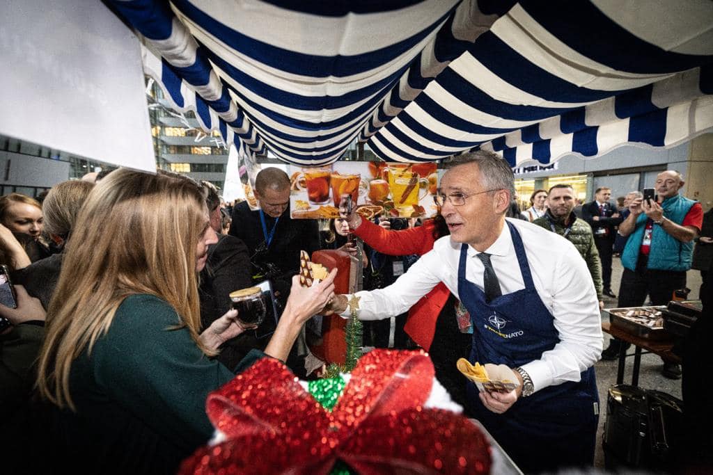 Генералниот секретар на НАТО, Јенс Столтенберг, по повод божиќните празници им правеше палачинки на вработените во НАТО.