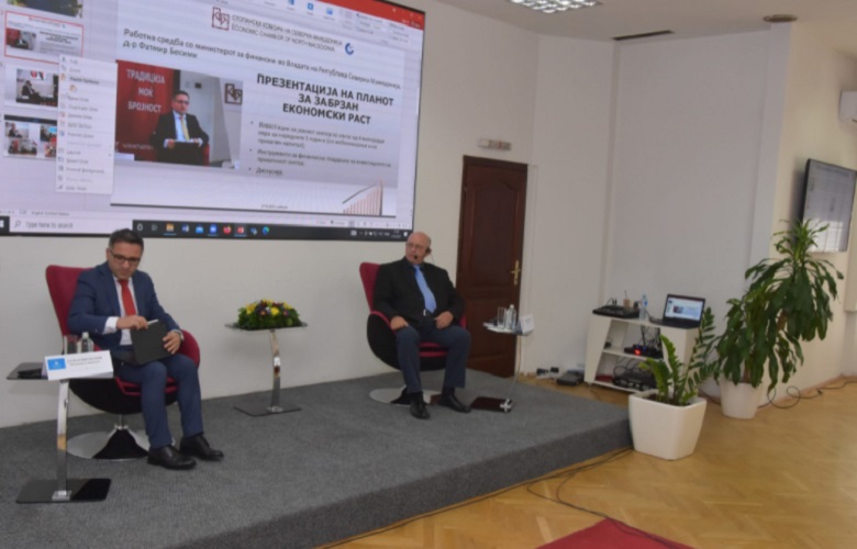 Министерот за финансии Фатмир Бесими го презентира Планот за економски раст пред претставници на компаниите членки на Стопанската комора на Северна Македонија (СКСМ).