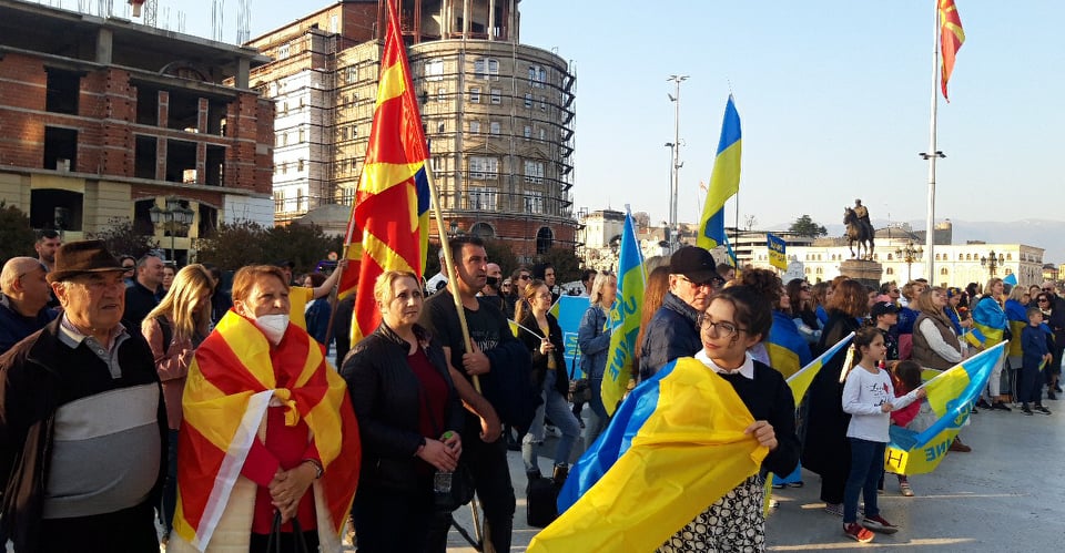 Стотици Македонци со украински знамиња одбележуваат еден месец од инвазијата