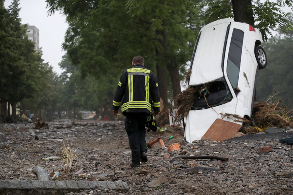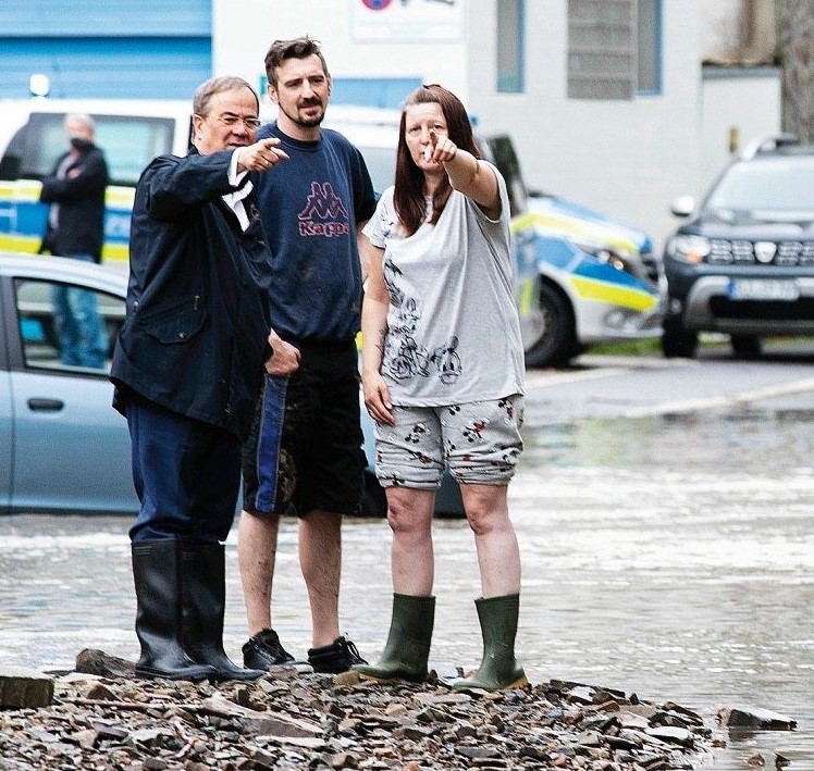 Во четвртокот, Армин Лашет, кандидат за канцелар за десноцентристичката Христијанско-демократската унија (ЦДУ) ги посети градот Хаген и градот Алтона, каде се појави во гумени чизми на поплавена улица и вети брза помош.