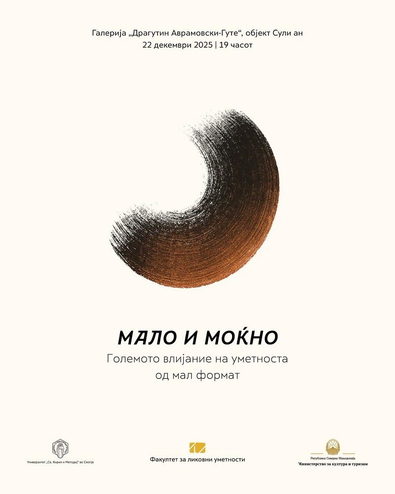 Факултетот за ликовни уметности при Универзитетот „Св. Кирил и Методиј“ денеска ќе ја отвори студентската изложба „Мало и моќно – Големото влијание на уметноста од мал формат“, во Галеријата „Драгутин Аврамовски-Гуте“ во Сули ан.